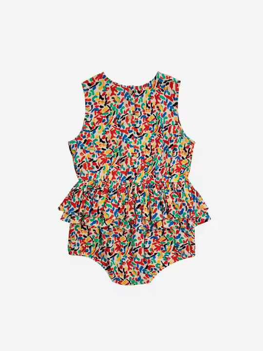 2024 Summer Custom Allover Print Baby Girls Rompers Cute Style Woven Fabric ODM Wholesale Factory Price