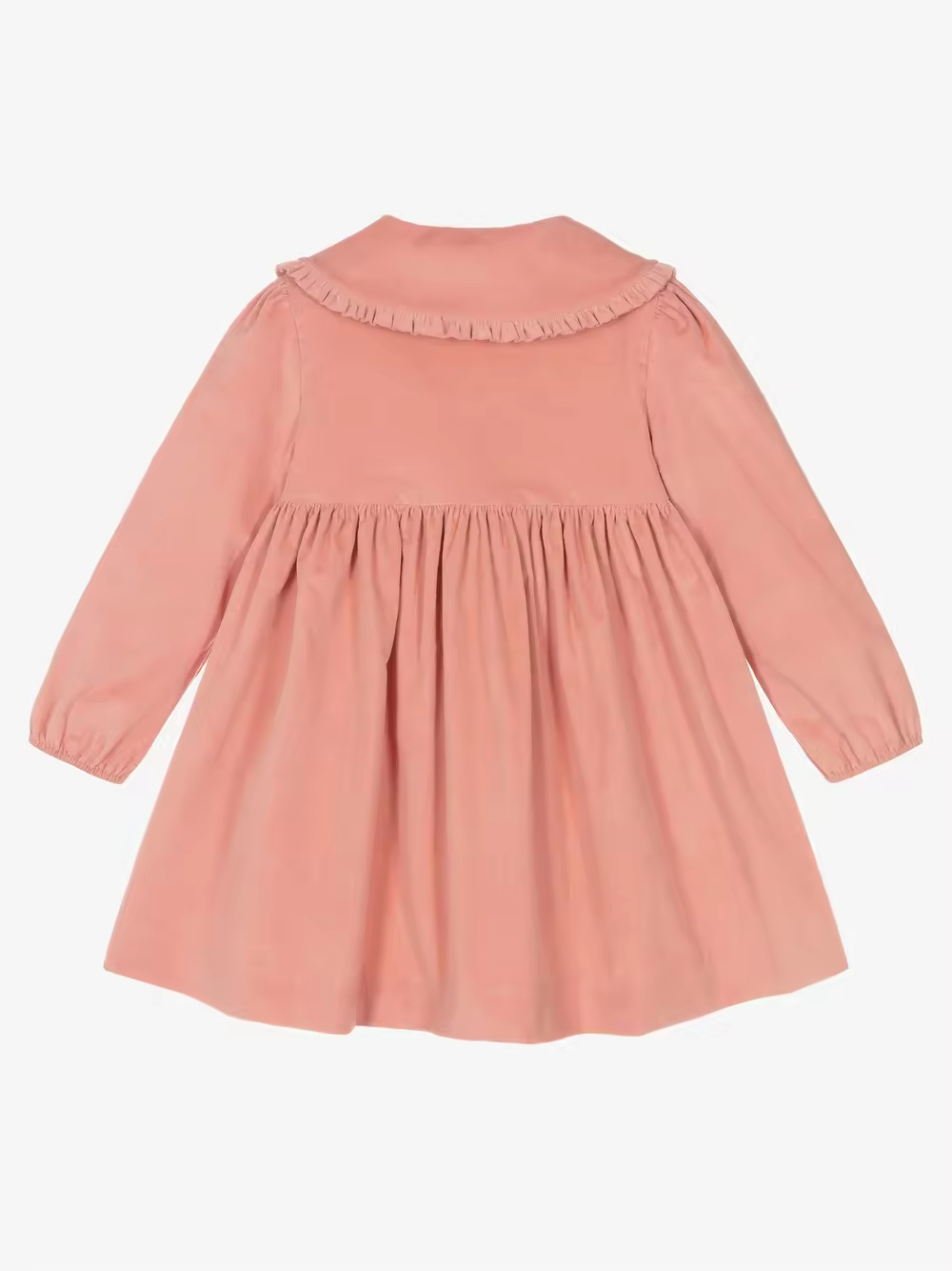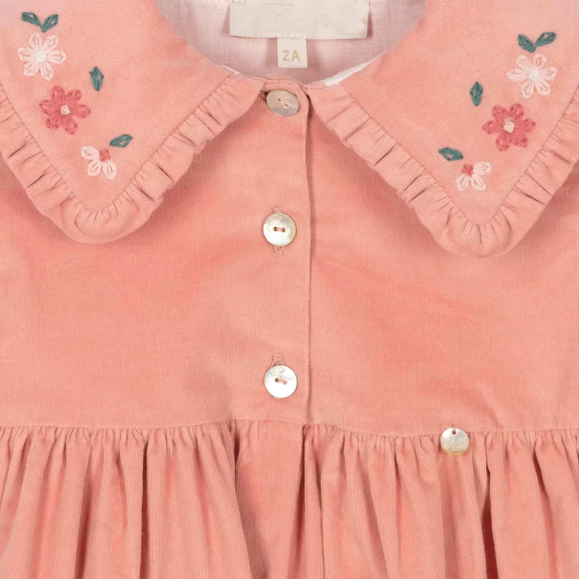 Custom Cotton or Polyester Corduroy Toddler Dresses With Embroidery Clothing Kids Girls Peach Color Girl Child Dress With Collar