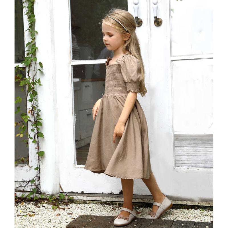 European stylist girls daily dress , square neck collar with smocking technique. Cotton/tencel material smooth hand-feeling, Acceptable customized logo suitable Spring/Summer season in any occasion。
