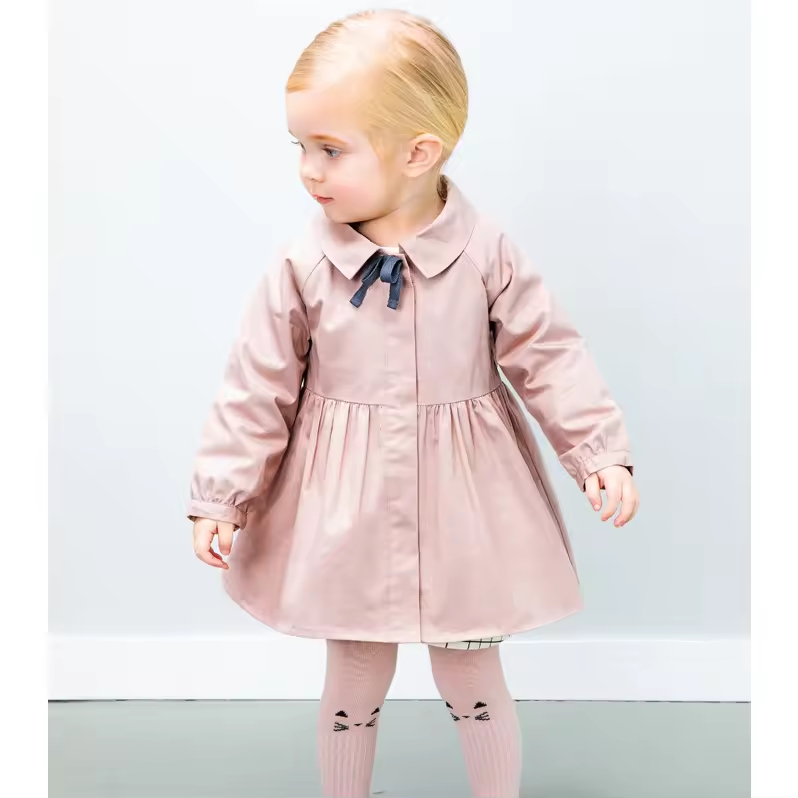 Autumn Girls Coat with Bow Knot and Hem Button Closure Type for Girls outerwear