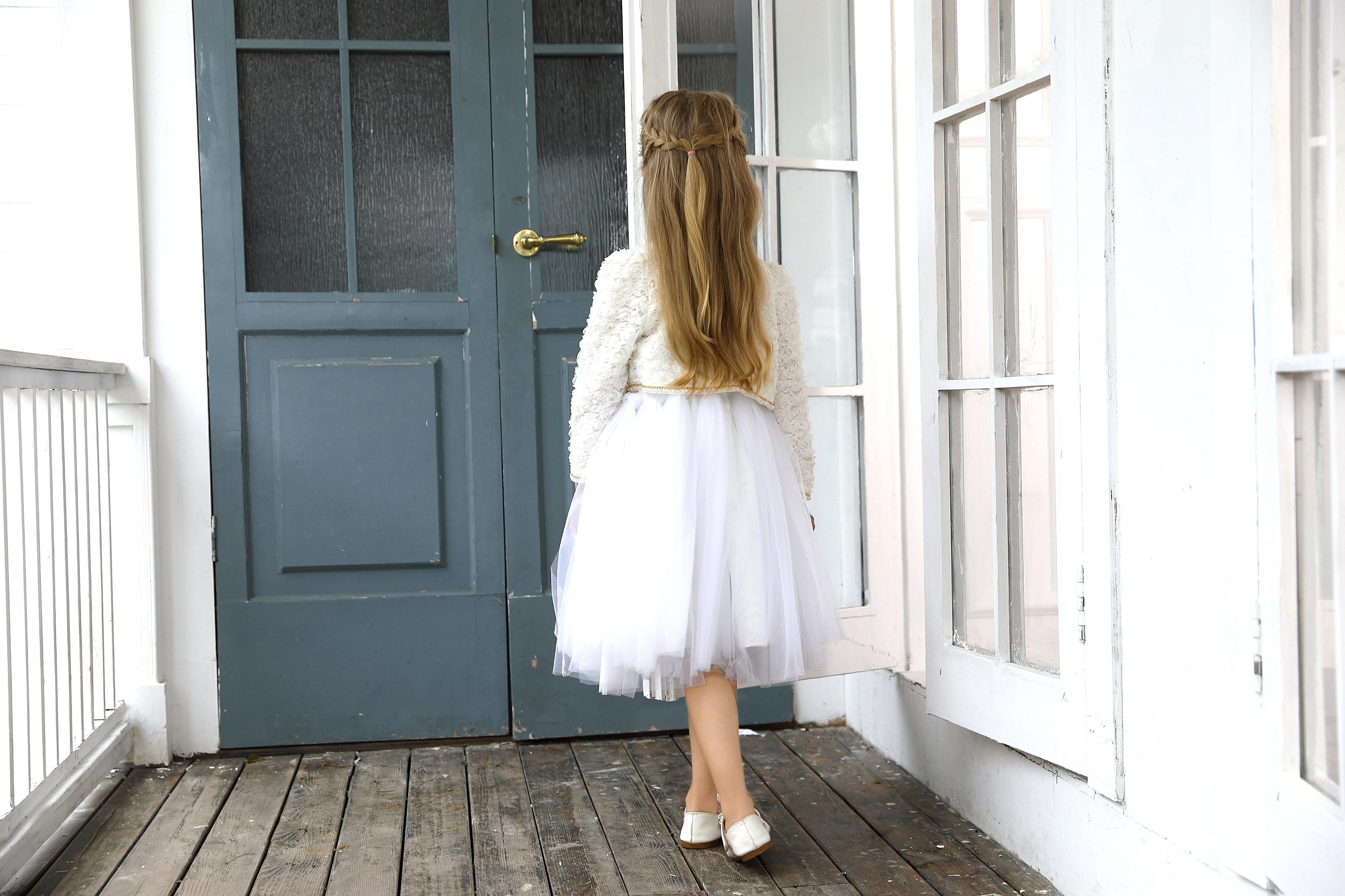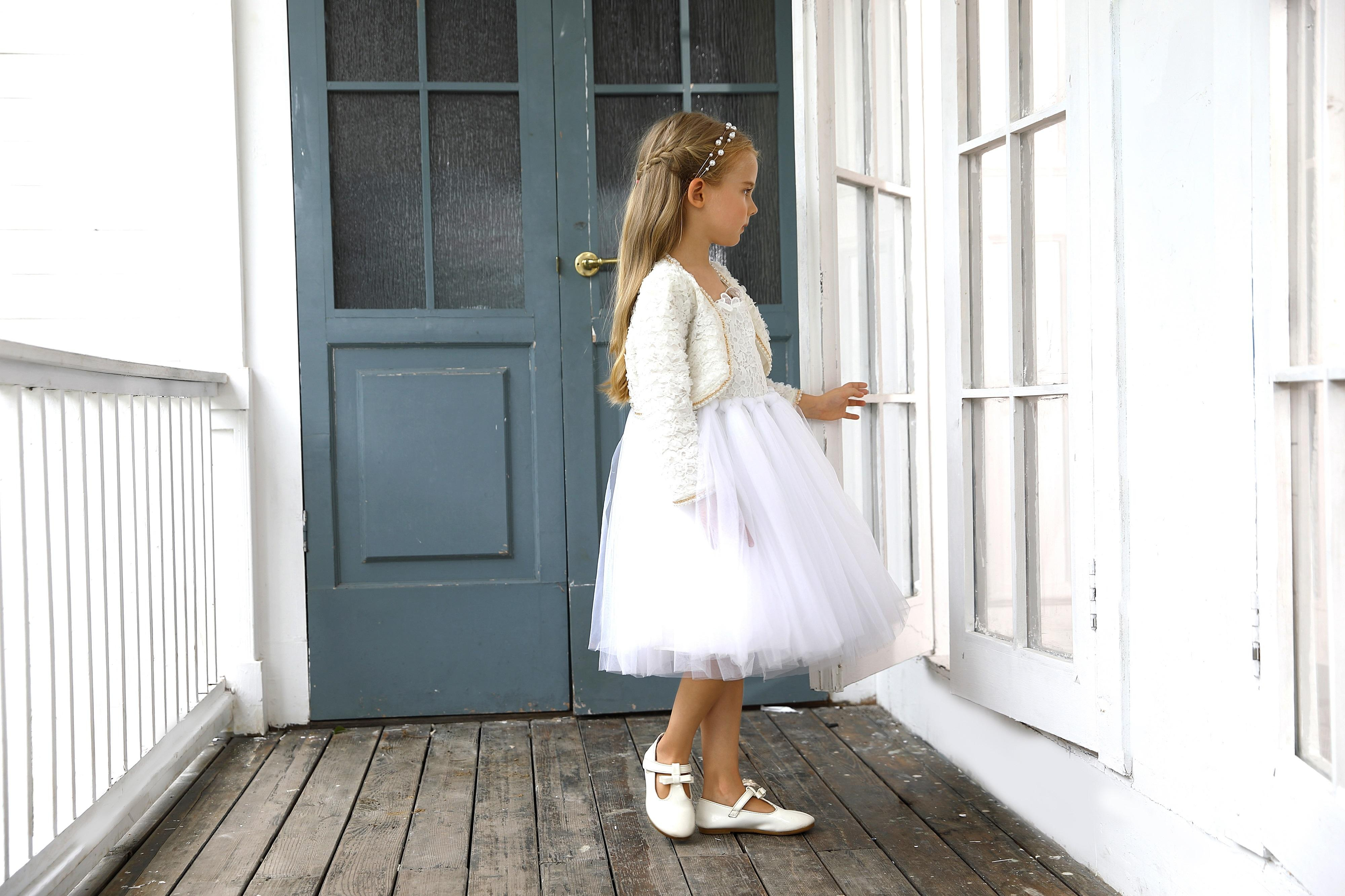 1.Girls Dress in White/black color, quality cotton fabric and a vintage style.