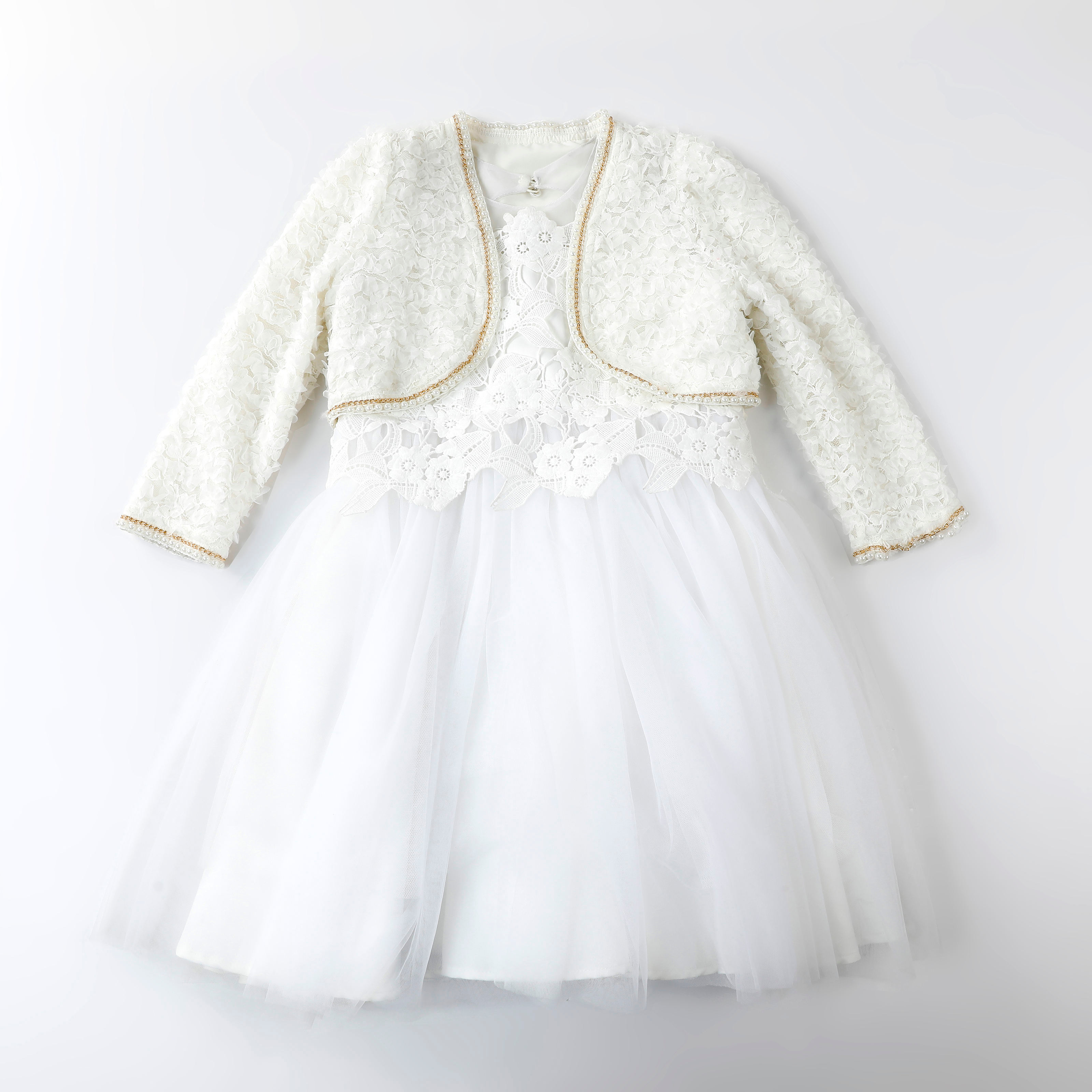 /Good Quality Elegant Summer Long Sleeves Embroidery Baby Girls Party Dress With Waistcoat
