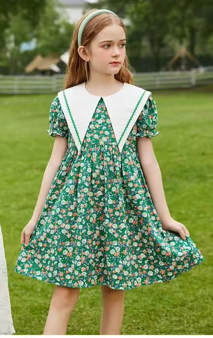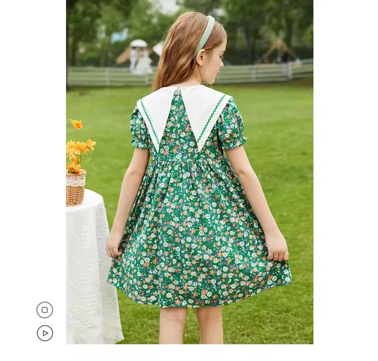 Customized Round Neck Collar Girls' Dress Toddler Dresses Flora Dresses