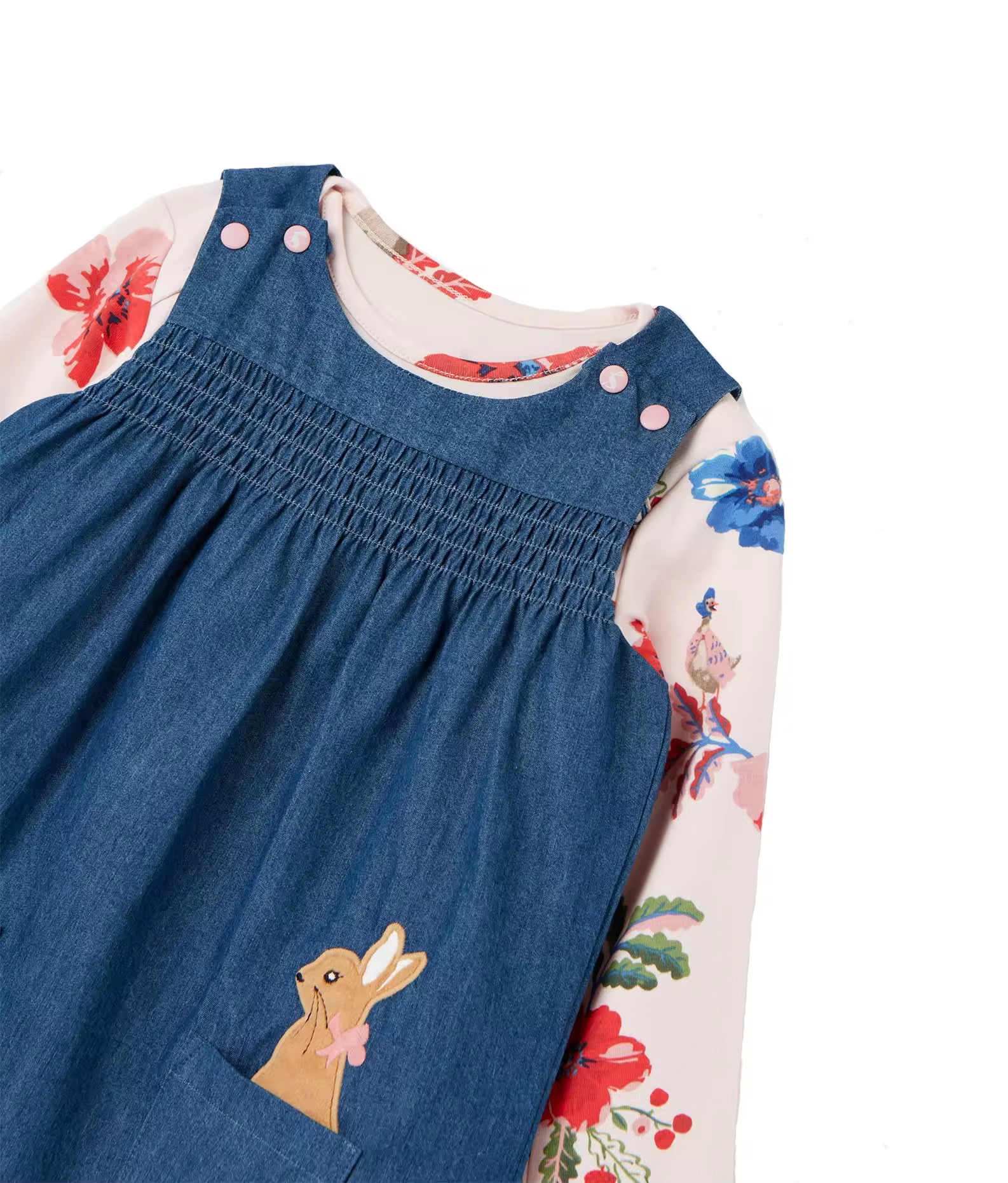 /Denim Tank Dress Fake 2 pcs Long sleeves Dress Smocking With Embroidery For Kids Girls 6-10 y Manufacturing