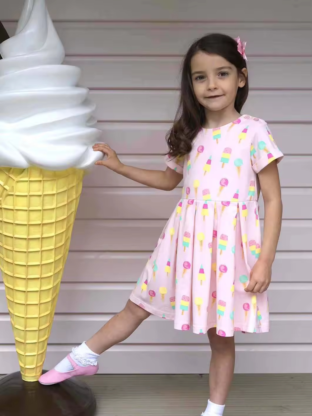 /Canton Brand Boutique Children Wear Girls Dresses 6-14 Years Lovely Cute Ice Cream Printing Girls' Dresses(old)