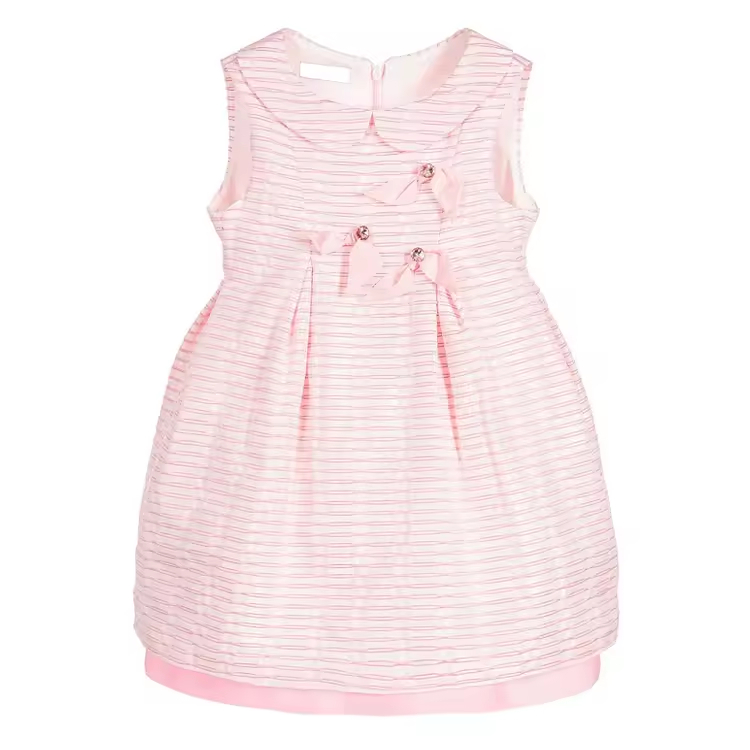 Pink Stripe Cute Wholesale Kids Dresses Sleeveless Summer Comfortable Kids Dress With Bow Knot