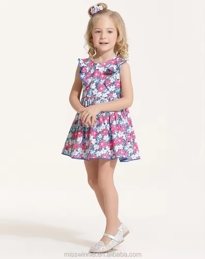 2025 Newest Baby Frock Beautiful Designs Fancy Romantic Printing Kids Cotton Frocks
