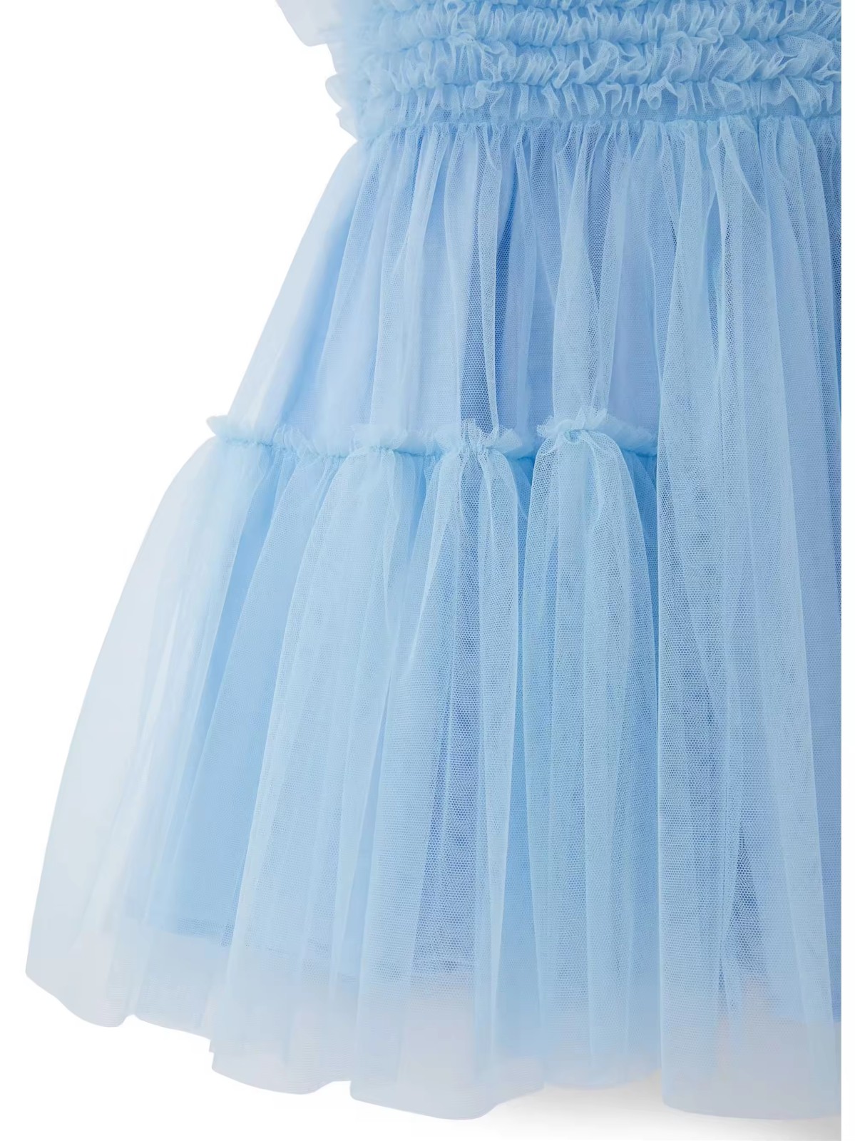 Customizable Blue Gauze Girls Tutu Dress with Ruffles Wholesale Age Group Children Season Summer Pattern Type Solid