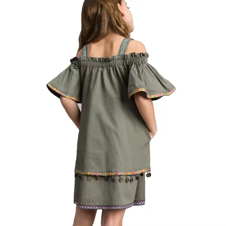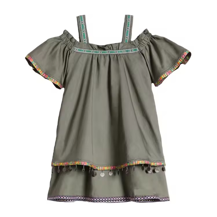 Army Green Baby Girls Summer Dress Ethnic Tassels Children Clothes Girl Dresses