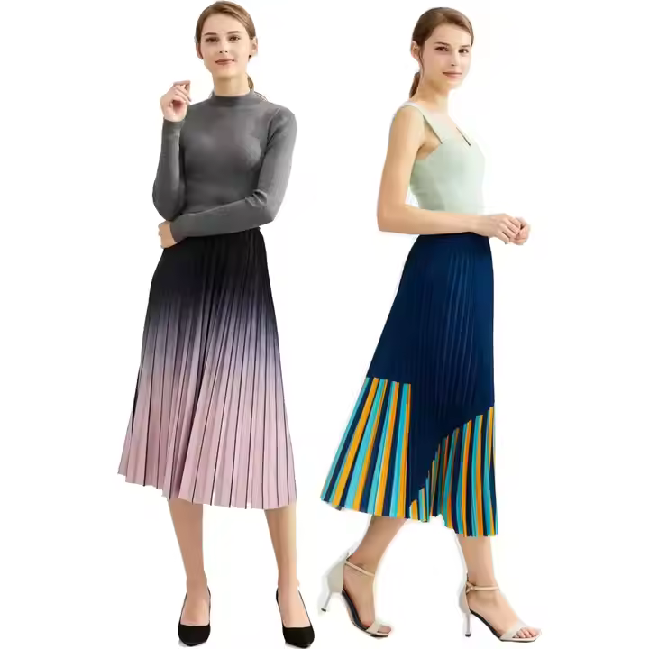 Customized your own design shade colors printing teenager high waist skirt pleated midi skirt