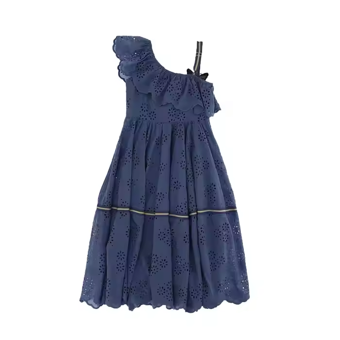 1.Girls Dress in White/black color, quality cotton fabric and a vintage style.