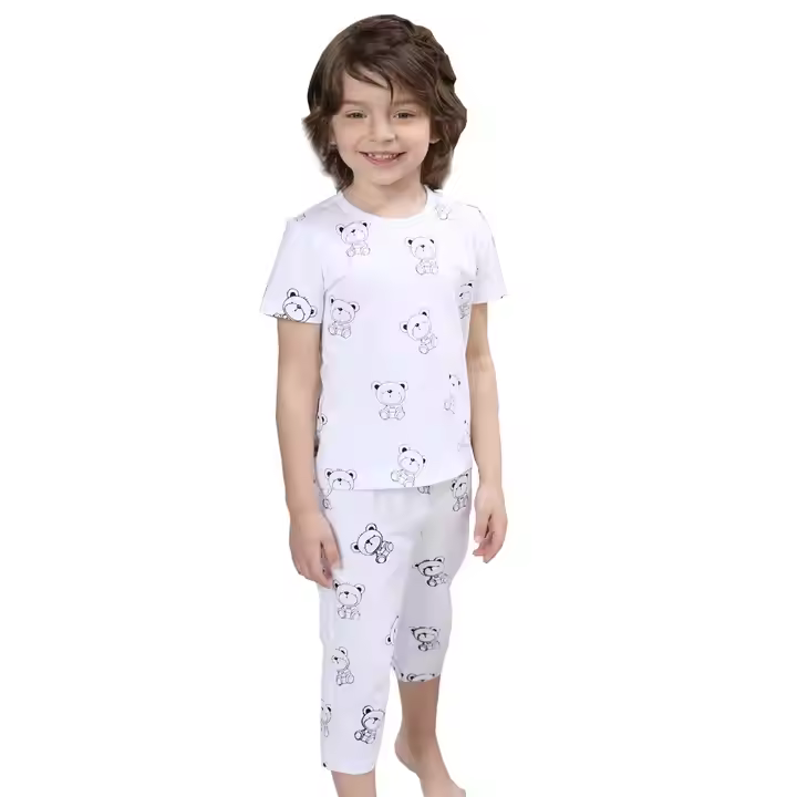 Custom Soft Hand Feel Bamboo Girls' Sleepwear Allover Print Summer Kids Summer Pajama Kids in Two Piece