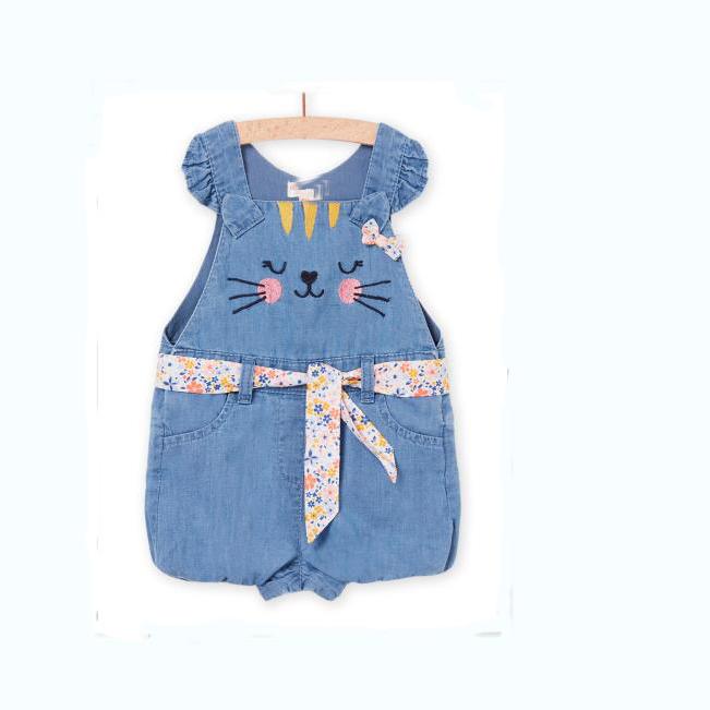 Custom Embroidery Cat Pattern Infant Baby Soft Woven Cotton Rompers