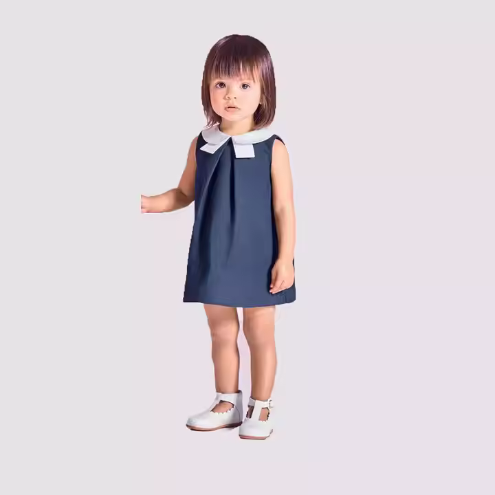 1.Girls Dress in White/black color, quality cotton fabric and a vintage style.